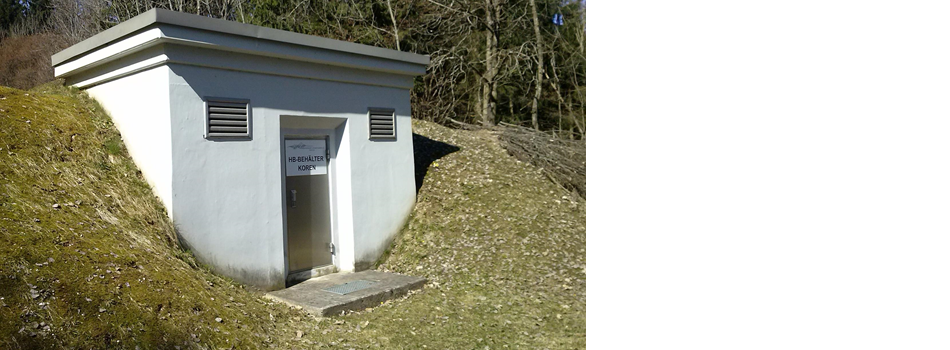 Behälter mit zwei Kammern mit einem Fassungsvermögen von je 150 m³ Trinkwasser, der Behälter wird von den Quellen Macusce und Ulbing mit Trinkwasser gespeist!