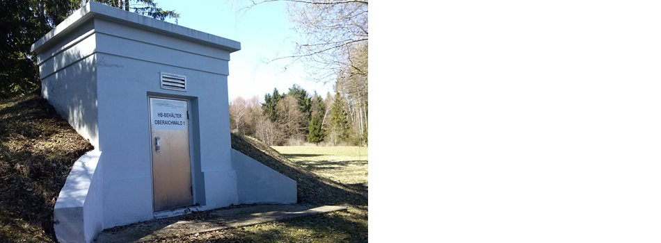 Behälter mit zwei Kammern mit einem Fassungsvermögen von je ca. 30 m³ Trinkwasser, der Behälter wird über die Transportleitung vom HB Koren mit Trinkwasser versorgt!